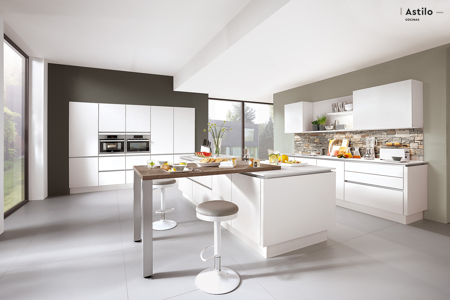 - Almacenamiento: El almacenamiento es clave en una cocina moderna. Asegúrese de tener suficientes gabinetes y estantes para almacenar sus utensilios, ollas y sartenes. También puede optar por almacenamiento oculto en la isla o en los bancos para maximizar el espacio.